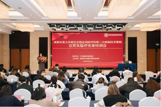 為做好新形勢下重大決策社會穩(wěn)定風險評估工作,進一步提升全市第三方機構社會穩(wěn)定風險評估工作質效,成都市社會穩(wěn)定風險評估協(xié)會于2024年12月26日組織開展《成都市重大決策社會穩(wěn)定風險評估第三方機構技術規(guī)程(2024年版)》(下稱“《技術規(guī)程》”)宣貫及穩(wěn)評實務培訓會。市委政法委有關負責同志、協(xié)會領導及會員單位穩(wěn)評從業(yè)人員共計180余人參訓。